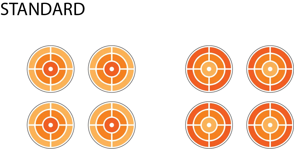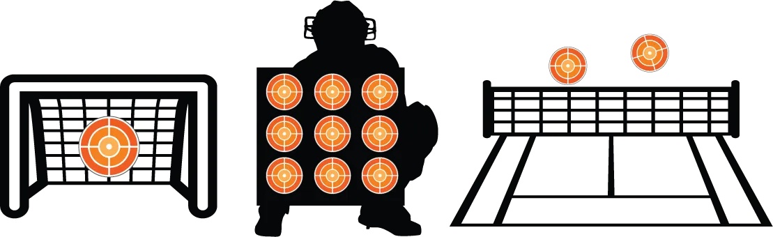 You can randomly place the targets in any configuration or choose PlayOff guided games that track placement of each target.