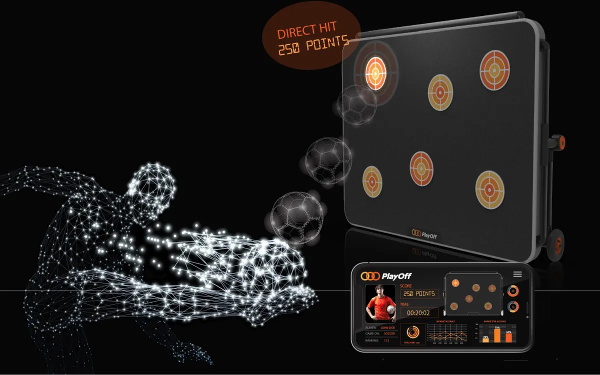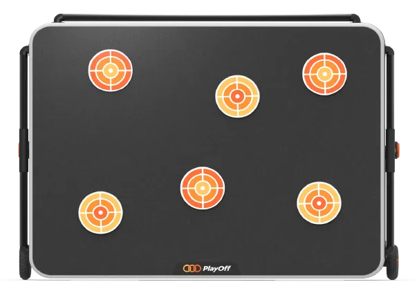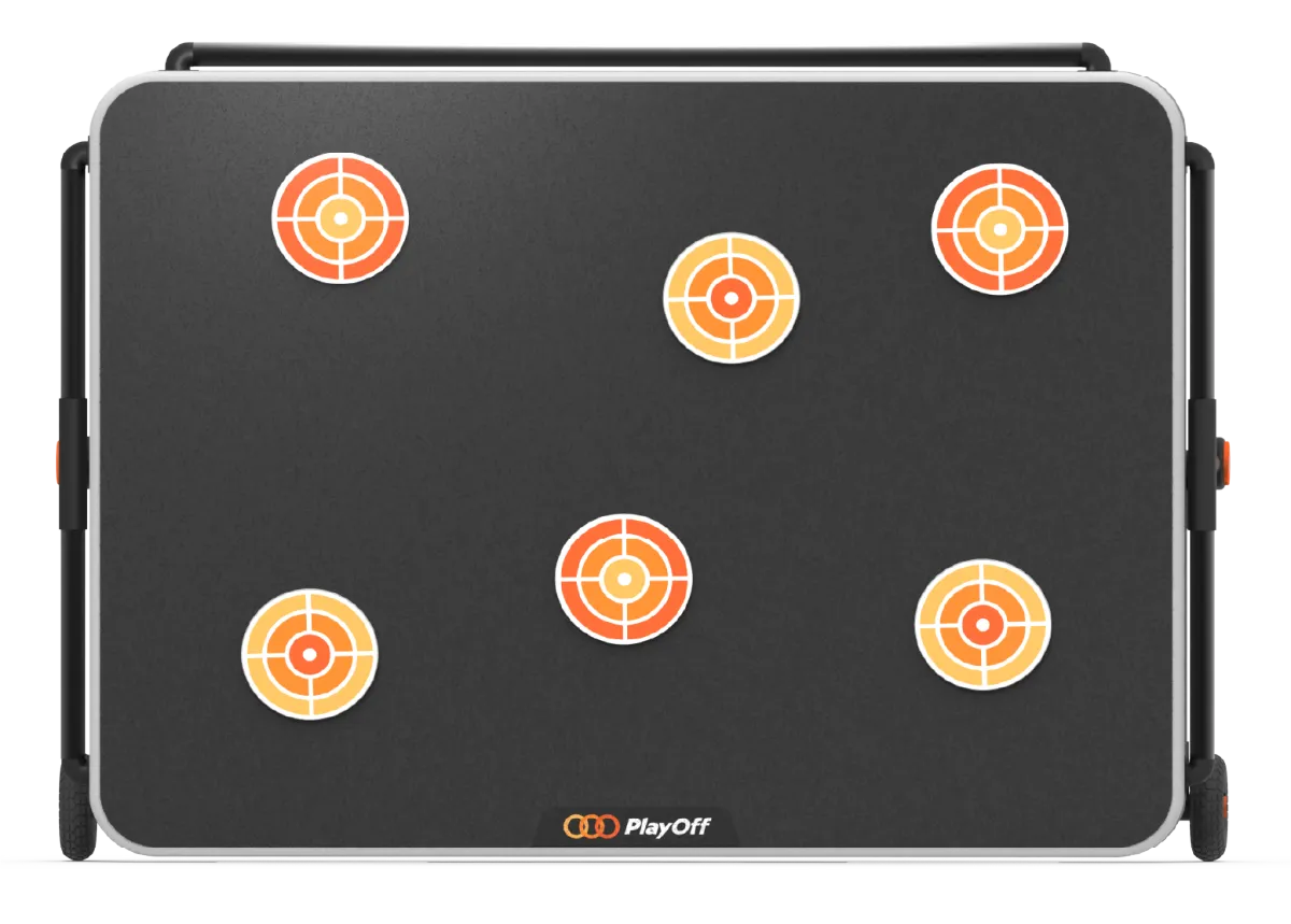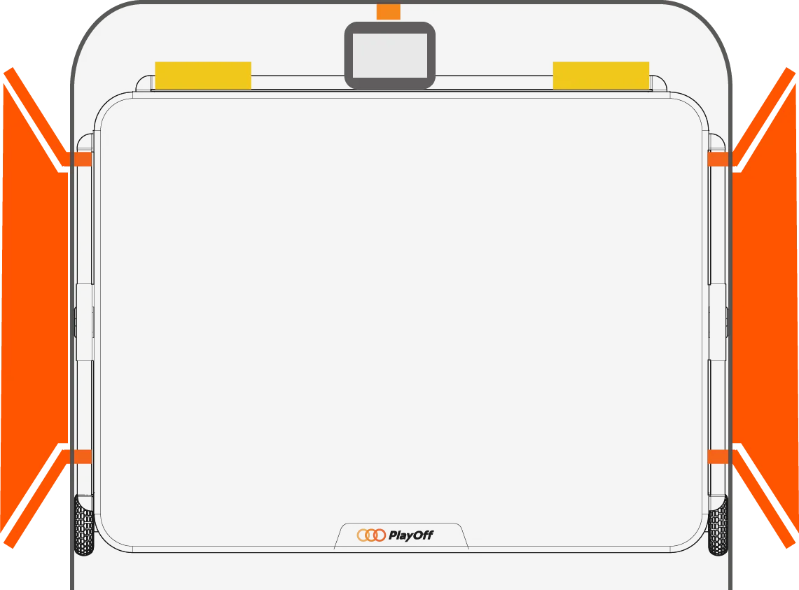 PlayOff is an 8' by 6' inflatable practice wall that can easily be turned “tall” or “wide” to accommodate multiple sports! The front face of PlayOff is coated with durable velcro adhesive surface that connects to our patented Bluetooth enabled targets.